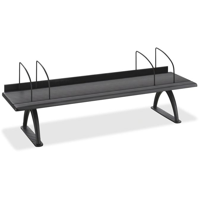 Optimize the space on your desk with this desk riser that offers a little extra. The extra-wide, 12" deep shelf is great for holding binders, telephone, monitor, small printer or other desk accessories. Shelf dividers keep books and binders upright and orderly. The 3/4" x 1-1/2" retainer lip in the rear keeps items from falling out of reach. Desk riser is made with a melamine top and cast aluminum legs. Weight capacity is 100 lb.