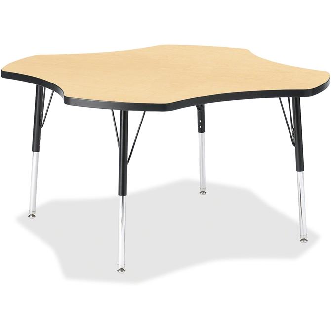Jonti-Craft Berries Elementary Black Edge Four-leaf Table - Laminated, Maple Top - Four Leg Base - 4 Legs - Height Adjustable - 15" to 24" Adjustment x 1.13" Table Top Thickness x 48" Table Top Diameter - 24" Height - Educational Environment - Assembly Re