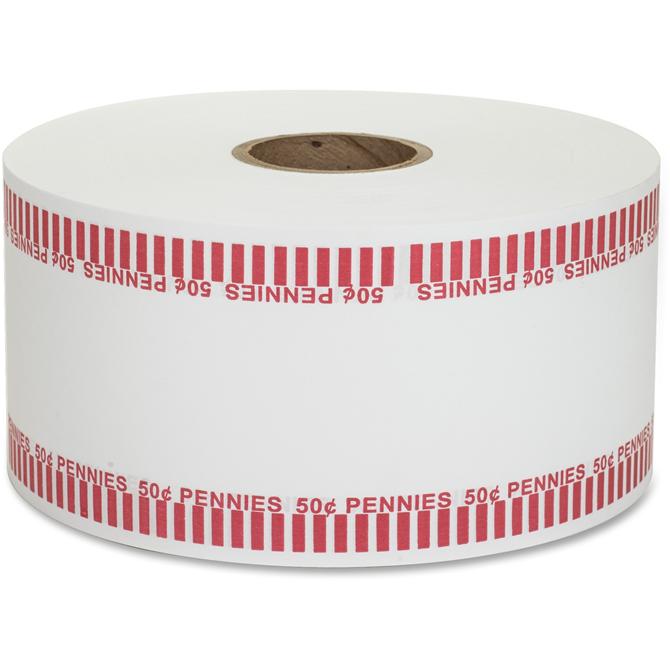 Color-coded, flat coin wrappers come one long, continuous roll for easy use in automatic coin-wrapping machines (sold separately). The 15 lb. white, kraft paper is cut by the machine and wrapped by the machine. Each roll contains approximately 1,900 wrappers. Wrappers for pennies are color-coded to meet ABA standards.