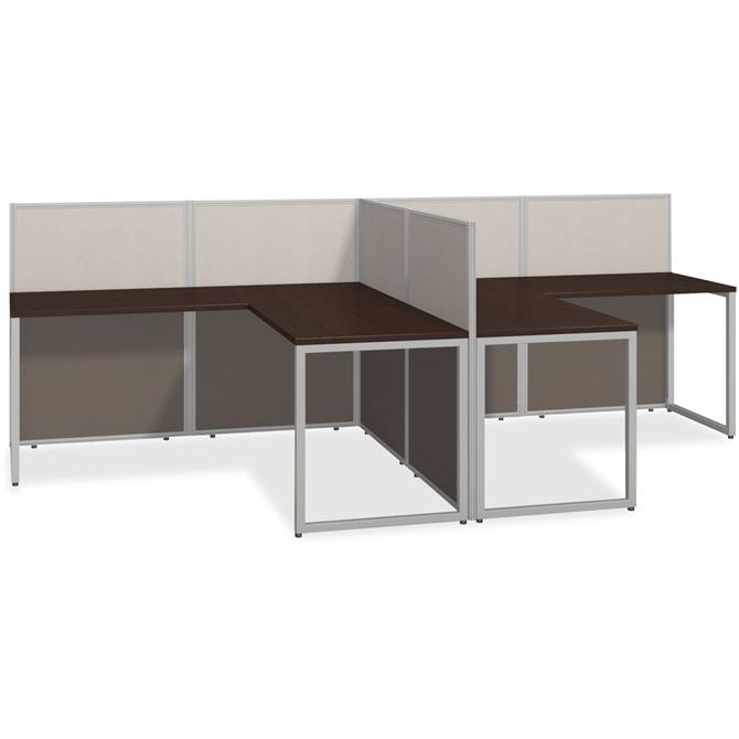 The 60" wide 2-Person L-Desk Open Office with 45" high panels lets you take advantage of your available floor space by combining individual work areas with a common panel wall. Two 60" wide x 24" deep Straight Office Desks, two 36" wide x 24" returns and set of two 60" wide x 45" high Cubicle Panels with corner connectors are part of the stylish, Easy Office collection that is designed for fast assembly with pre-installed connectors, minimal parts and sturdy design so you can get to work. Thermally fused, laminate worksurfaces feature superior resistance to scratches and stains while providing a wire-management grommet to keep cords organized. Desks attach to sturdy, 45" high wall panels that foster team collaboration. Configure to the left or right. Fabric-upholstered panels come in a durable, Light Gray and Storm Gray, two-toned fabric that complements the rich warmth of the Mocha Cherry worksurfaces. Commercial construction meets ANSI/BIFMA standards for safety and performance.