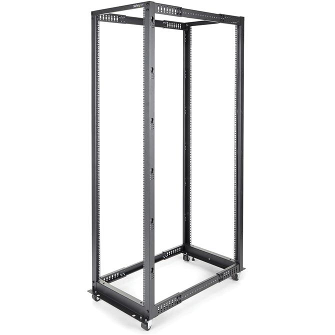 The 4POSTRACK42 42U Server Rack lets you store your servers, network and telecommunications equipment in a sturdy, adjustable depth open-frame rack. Designed with ease of use in mind, this 42U rack offers easy-to-read markings for both rack units (U) and depth, with a wide range of mounting depth adjustments (22 - 40in) that make it easy to adapt the rack to fit your equipment. This durable 4-post rack supports a static loading capacity of up to 1320lbs (600kg), and offers compliance with several industry rack standards (EIA/ECA-310, IEC 60297, DIN 41494) for a universal design that's compatible with most rack equipment. For a complete rack solution that saves you time and hassle, the rack includes optional accessories such as casters, leveling feet and cable management hooks. The base is also pre-drilled for securing the rack to the floor if needed, providing you with many options to customize the rack to fit your environment. Backed by a StarTech.com 2-year warranty and free lifetime technical support. More from the Manufacturer