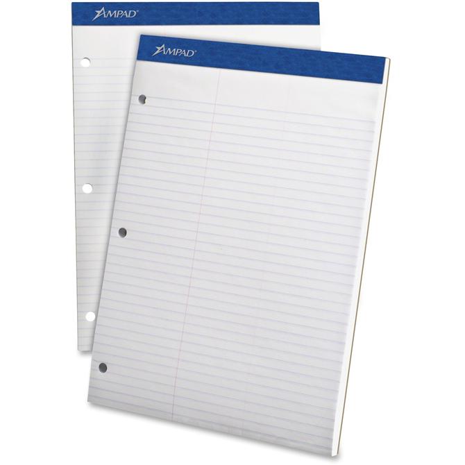 With 100 sheets, this top-bound writing pad offers twice the number of sheets as standard writing pads. Each sheet of quality, 15 lb. paper is law-ruled and microperforated for easy sheet removal. Sheets are also three-hole punched to you can immediately insert them into your standard-size binders. Extra-rigid, 80 point, chipboard backer provides writing support for handheld use.
