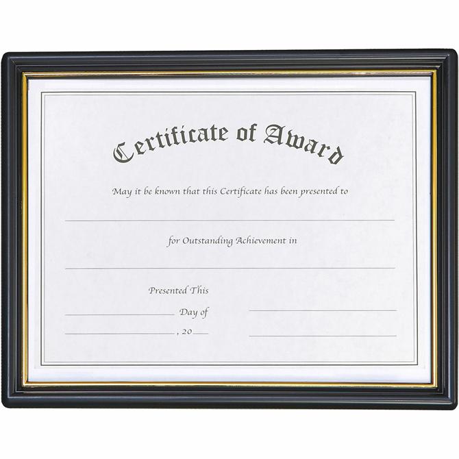 nudell Plastic Framed Award Certificate - 8.50" x 11" Frame Size - Rectangle - Hanger - Plastic - Gold, Black - 1 Each