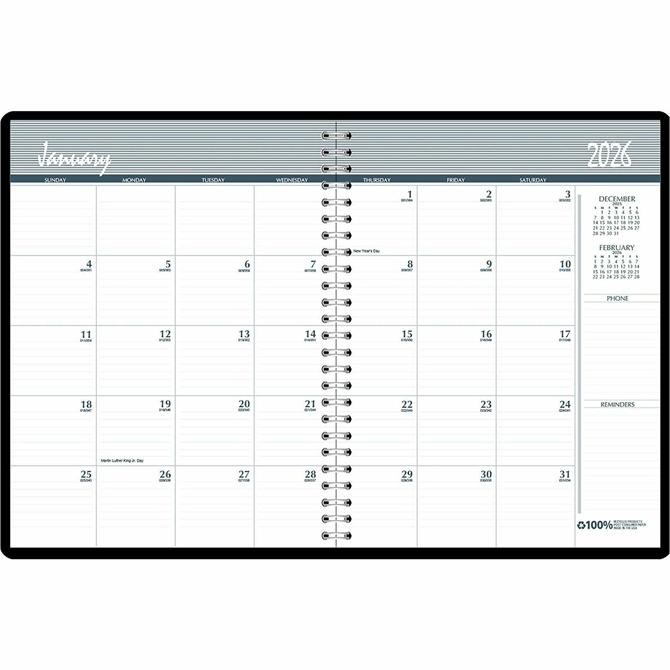 House of Doolittle Wirebound Monthly Planner - Monthly - 14 Month - December 2025 to January 2027 - Black Cover - 1 Each