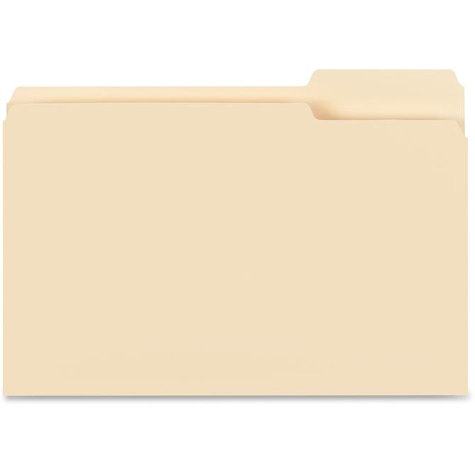File folders feature 1/3-cut tabs in position No. 3. Tabs are 1/2" high undercut for label visibility. Top corners are rounded. Legal-size file folders are scored for 3/4" expansion and made of 11 point stock.