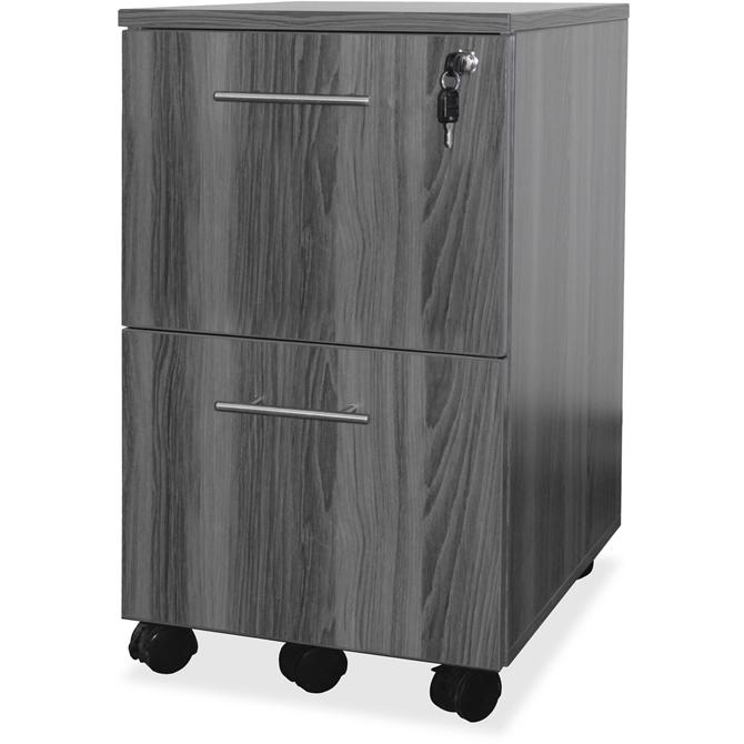 Pedestal is part of the Mayline Medina Series with contemporary style and elegant functionality. Clean lines, curved shapes and floating worksurfaces reflect Italian design influences. Gray Steel laminate finish ensures a beautiful collaboration with other Mayline furniture and complements most any decor. Laminate is stain-resistant, water-resistant and abrasion-resistant. Both file drawers operate smoothly using full-extension, ball-bearing suspension. They accommodate both letter-size and legal-size file folders with included hangrails. Durable pedestal fits under credenzas and rolls smoothly on 2" dual-hooded casters. Gang-lock features a removable core for locking both drawers. Finished top surface offers another surface for storage when you situate the pedestal next to your desk.