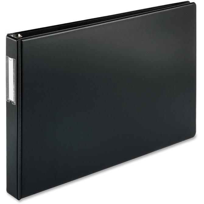 Round-ring binder with label holder is perfect to store tabloid-size documents. Everyday durability is suited for active projects. Use the clear overlay on the spine for easy labeling. Rings are back-mounted so pages lie flat.
