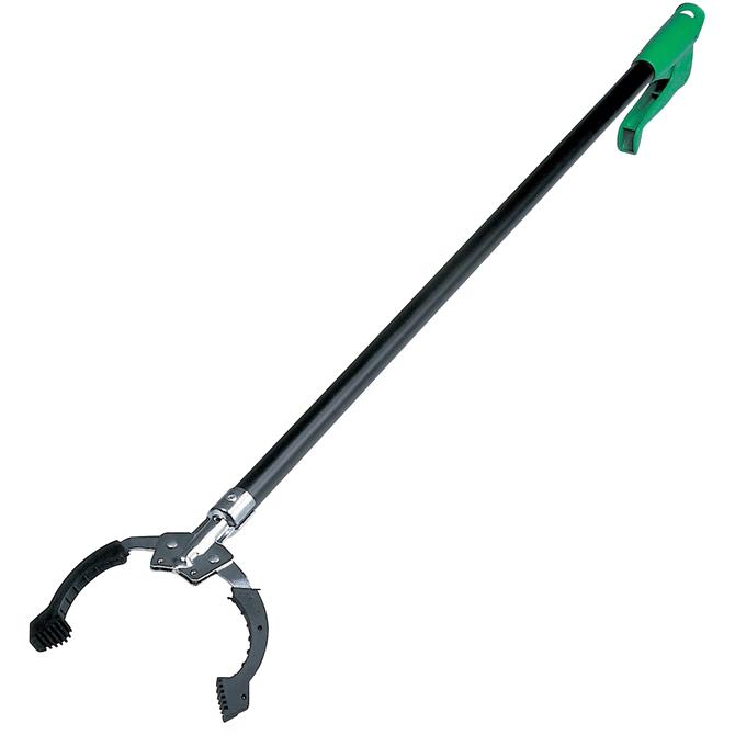 All-purpose grabber is perfect for sanitary trash removal. Powerful claws securely grip small and oddly shaped objects including cans, paper, bottles and more. Handle eliminates bending and backaches to provide a more hygienic way to dispose of waste.