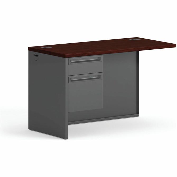 Modular steel desking combines your choice of easy-care laminate tops with sturdy steel body for a complete desk solution that's both attractive and durable. Mahogany laminate tops feature visually appealing rounded edges for a polished look and enhance your comfort. Wire management is made easy with cord-management grommets on desks and end panels to facilitate cable connections between desks. Desking also features steel ball-bearing suspension in all box and file drawers, "Tru-fit" mitered drawer fronts for better visual alignment, one pencil tray per unit except returns, and full-extension, triple-tied cradles on all file drawers for full access to interior contents. Desking meets or exceeds applicable ANSI/BIFMA standards.