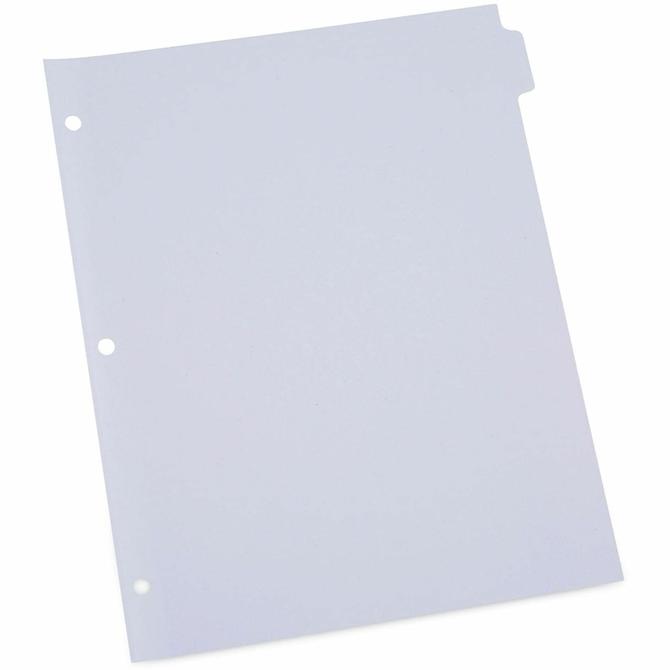Keep larger binder files organized with a three-hole punched, crisp, flat-white paper tabs that accept any ink, pencil, or printing. Sort, collate, and index anything with these classic tab dividers. The tab folders are constructed with a clear, plastic strip binding edge. Built with enhanced durability to prevent tear out. The built-in holes eliminate the need for a hole punch and ensure the tabs line up perfectly. Great for organizing large files, notes, chapters, and sections within larger binder files.
