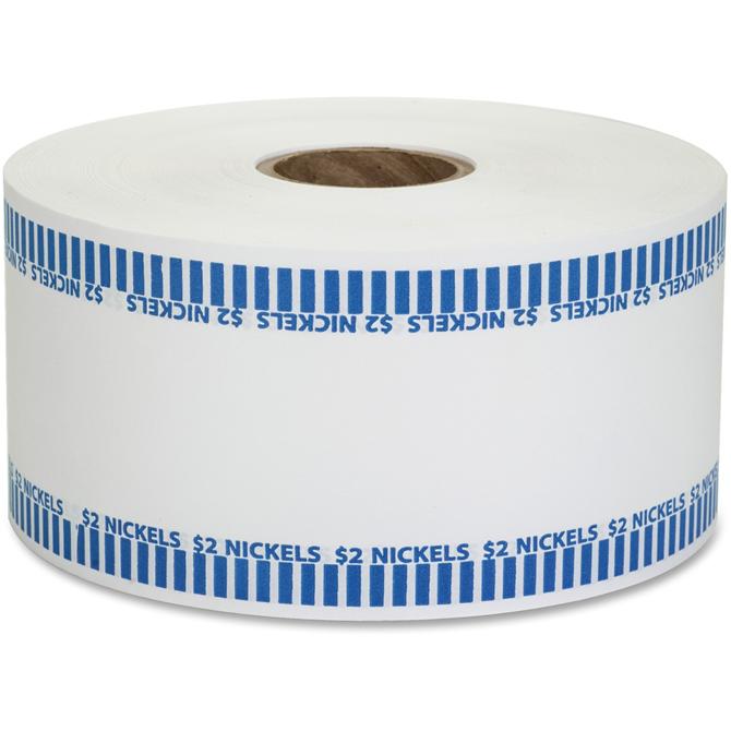 Color-coded, flat coin wrappers come one long, continuous roll for easy use in automatic coin-wrapping machines (sold separately). The 15 lb. white, kraft paper is cut by the machine and wrapped by the machine. Each roll contains approximately 1,900 wrappers. Wrappers for nickels are color-coded to meet ABA standards.