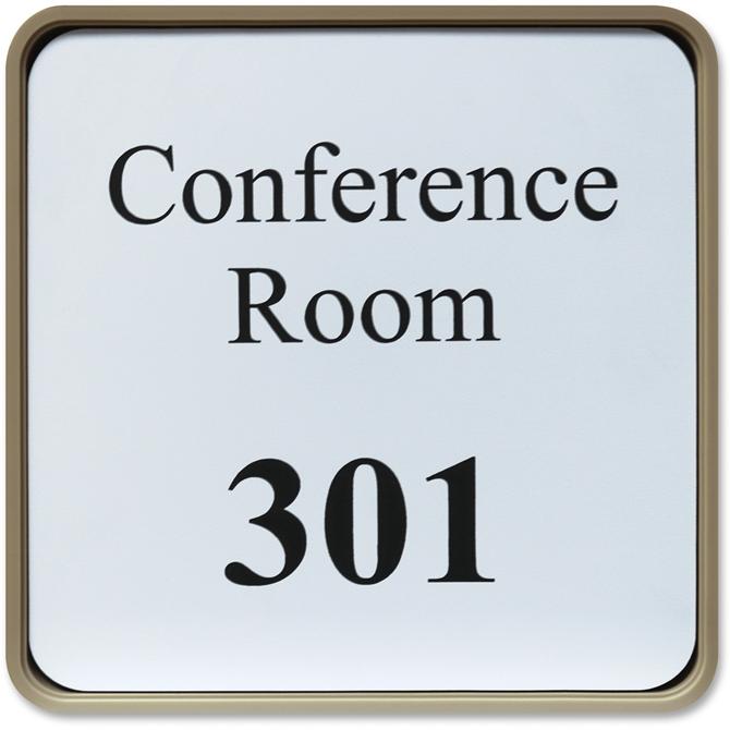 Designer wall sign with rounded corners is perfect for any modern office environment. It has been engineered as a quality interior sign system so it can be used for a door or a wall. Distinctive professional look is perfect for offices, courthouses, schools and warehouses. Choose from more than 35 fonts and more than 30 sign colors. Contact customer service to customize the plastic, 6" x 6" sign with an almond frame.