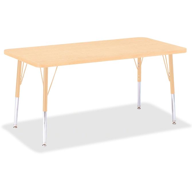 Let children safely work on their favorite arts and crafts on this rectangular activity table. Durable laminate features an easy-to-clean surface. TRUEdge is permanently thermo-fused to the edges to prevent chipping. Extra-safe, dual-screw steel legs allow you to easily adjust the height of the table. Powder-coated, adjustable legs can be repositioned in 1" increments to provide maximum comfort for children. Leg guides reduce squeaks, prevent snags and eliminate rusting.