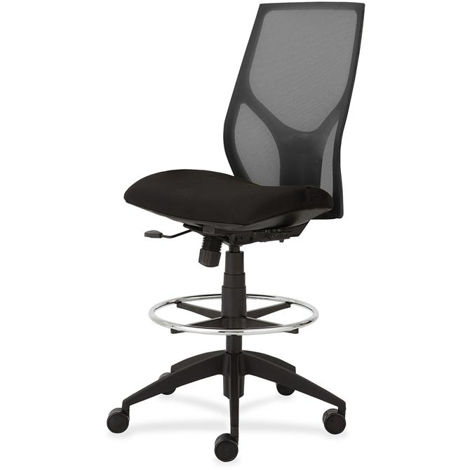 Vault Mid-back Stool with no arms goes beyond the expected with features that let you personalize your comfort. Uncommon for a mesh back design, ratchet back-height adjustment lets you raise or lower the backrest from 23" to 25-1/2" for the greatest comfort. High-quality, woven tension mesh in black conforms to your back, following every move with support, including the lumbar region. Seat slider adjusts the seat depth from 16" to 18-1/2" so you are just where you need to be. Other functions include upright tilt lock, 3:1 back-to-seat tilt ratio, center knob tension adjustment, pneumatic seat-height adjustment from 23" to 31" for use with worksurfaces up to 36" high and 360-degree swivel. High-resilient, molded foam seat features a waterfall seat front to promote circulation. 20" wide seat is upholstered in Onyx fabric. Durable, black nylon base with five casters offers long, trouble-free service. Weight capacity is 300 lb.