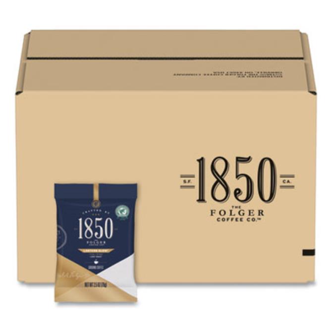Folgers 1850 Coffee Roasts are made with fire-roasted, steel-cut coffee beans using time honored roasting and grinding techniques for timeless taste. Pre-measured packs equal one pot, (10) 6 fl oz cups and are ground for easy commercial brewing. Made with 100% premium Arabica coffee beans, these unique coffee blends are full of flavor. They're excitingly bold yet amazingly smooth. Crisp and clean. Robust and balanced. In the form of ground coffee, it's versatile enough to prepare in any way you please. No matter how you brew it, from French press to drip machine, Folgers 1850 coffee is sure to be one of the most amazing cups you've ever had. Beverage Type: Coffee; Flavor: Lantern Glow; Roast Type: Light; Packing Type: Fraction Pack.