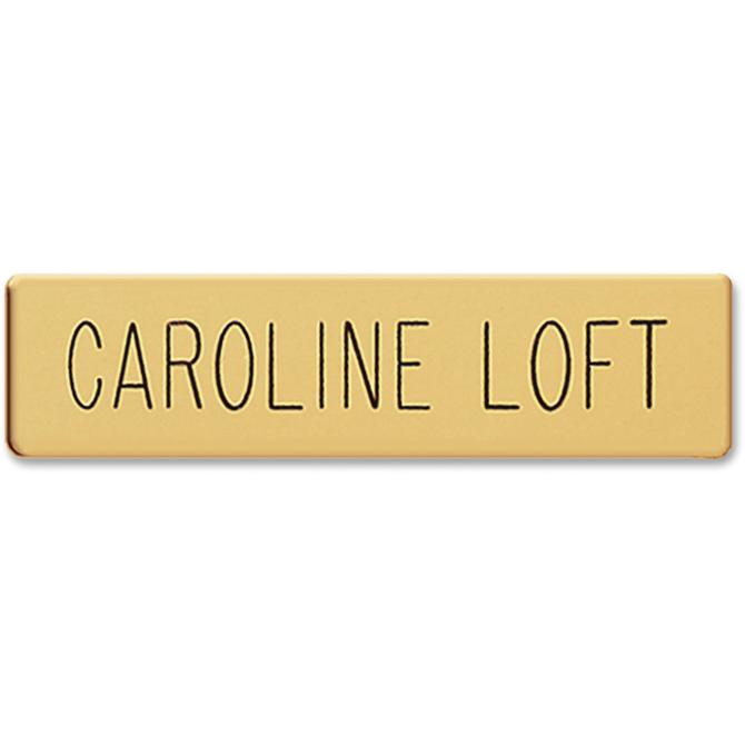 Keep your uniforms looking sharp with a metal uniform badge. This gold-colored badge with black lettering is perfect for military or any type of name badge. Use for any business uniform. Badge attaches with a military clutch fastener.