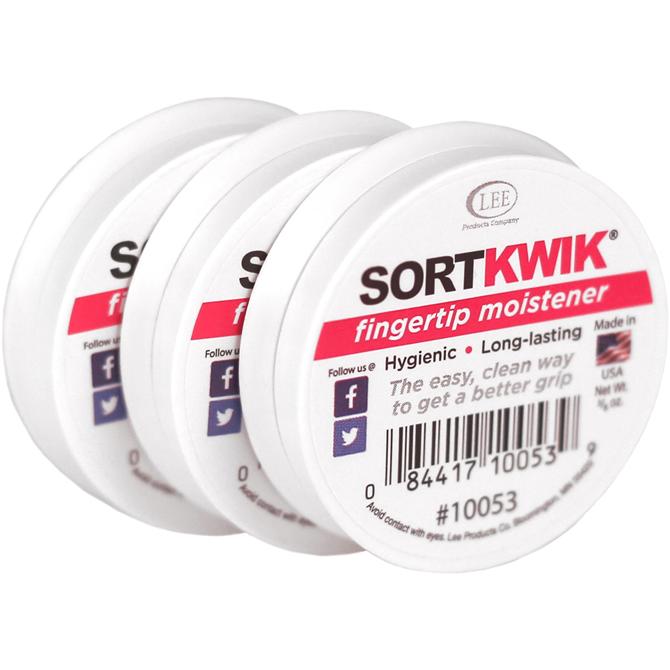 Hygienic fingertip moistener is a long-lasting, grip enhancer for accurate currency counting, easy collating and faster sorting of papers. It works by keeping the end of the finger moistened for positive contact with surfaces and materials, so you never have to lick your fingers again. Perfect for bank tellers, cashiers, office administrators and more. Odorless, nontoxic formula won't stain skin, paper or clothing. Sortkwik Fingertip Moistener even contains an antimicrobial ingredient for more hygienic protection and acts as a humidity-absorbent blotter. Plastic container is made with a high percentage of recycled content.