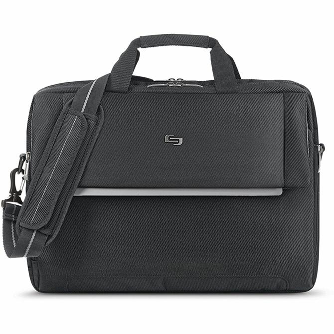 Laptop briefcase features a padded compartment to protect laptops with up to a 17.3" display. Front, zip-down organizer section offers additional storage for chargers or personal items. Use the cushioned carry handle or removable, adjustable shoulder strap for a comfortable way to travel. Laptop briefcase is made of a durable polyester body for lasting protection and use. Ride-along feature attaches to upright handles of luggage bags for consolidated travel.