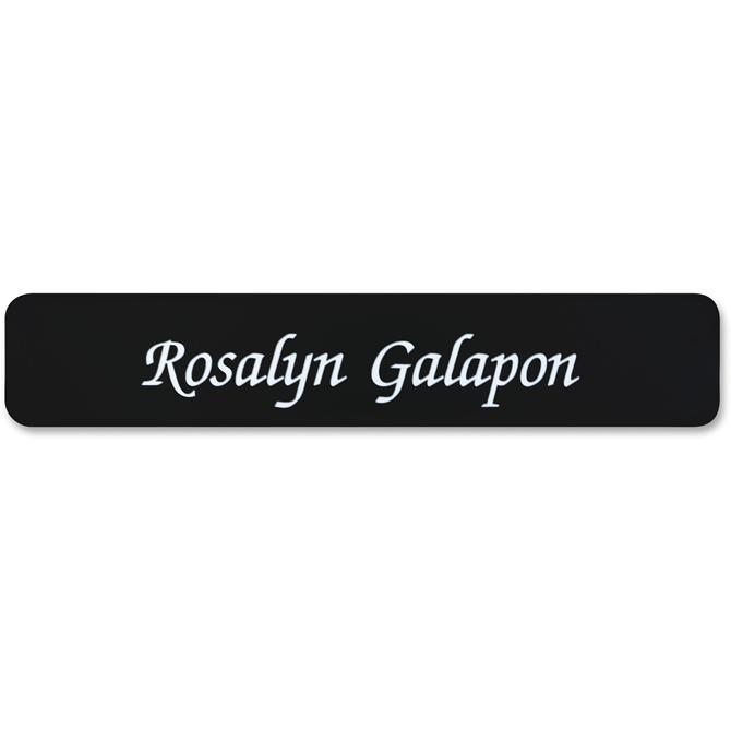 Designer nameplate with rounded corners is perfect for any modern office environment. It has been engineered as a quality interior sign system and features a distinctive professional look. Choose from more than 35 fonts and more than 30 plastic insert colors. Contact customer service to customize the plastic 2" x 10" sign.