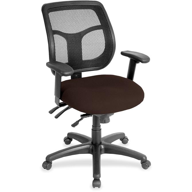 Apollo Multifunction Task Chair features a ratchet back that moves up or down relative to the seat for lumbar support and comfort. Mesh back provides enhances airflow for breathability. Set back at an angle for personalized comfort in reclined position. Seat-height adjustment lets you position the seat height relative to the floor. Chair rocks back and forth with adjustable, center-tilt mechanism. Canyon vinyl-upholstered, padded waterfall seat with sloping front reduces pressure on the back of the knees. Tilt-tension control with tilt lock allows you to adjust the recline rate based on your weight. Seat tilts forward to change the angle for a comfortable position when you're using a keyboard. Arm-height adjustment adjusts arm up or down while arm pads angle in or out. Nylon, five-star base features casters for easy mobility. Chair is Greenguard certified to have low chemical emissions.