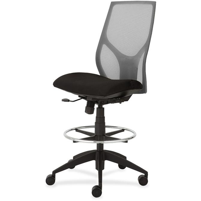 Vault Mid-back Stool with no arms goes beyond the expected with features that let you personalize your comfort. Uncommon for a mesh back design, ratchet back-height adjustment lets you raise or lower the backrest from 23" to 25-1/2" for the greatest comfort. High-quality, woven tension mesh in gray conforms to your back, following every move with support, including the lumbar region. Seat slider adjusts the seat depth from 16" to 18-1/2" so you are just where you need to be. Other functions include upright tilt lock, 3:1 back-to-seat tilt ratio, center knob tension adjustment, pneumatic seat-height adjustment from 23" to 31" for use with worksurfaces up to 36" high and 360-degree swivel. High-resilient, molded foam seat features a waterfall seat front to promote circulation. 20" wide seat is upholstered in Onyx fabric. Durable, black nylon base with five casters offers long, trouble-free service. Weight capacity is 300 lb.