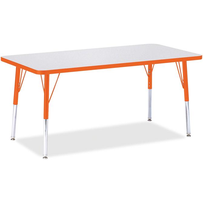 Let children safely work on their favorite arts and crafts on this rectangular activity table. Laminate is durable and features an easy-to-clean surface. TRUEdge is permanently thermo-fused to the edges to prevent chipping. Extra-safe, dual-screw steel legs allow you to easily adjust the height of the table. Powder-coated, adjustable legs can be repositioned in 1" increments to provide maximum comfort for children. Leg guides reduce squeaks, prevent snags and eliminate rusting.