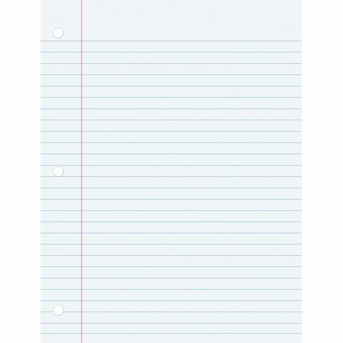 Quality filler paper is great for all your home, office and classroom needs. Smooth white paper is well-suited for note-taking and compositions. Paper is wide-ruled with 3/8" spacing and a red margin on both sides. It is three-hole punched so you can easily store in standard three-ring binders and remove when necessary. Paper is recyclable.