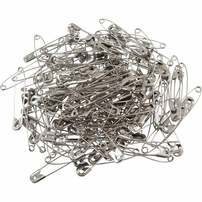 Nickel-plated steel safety pins feature rust-resistant finish. Smooth sharp points allow easy penetration. Traditional design is easy to use.