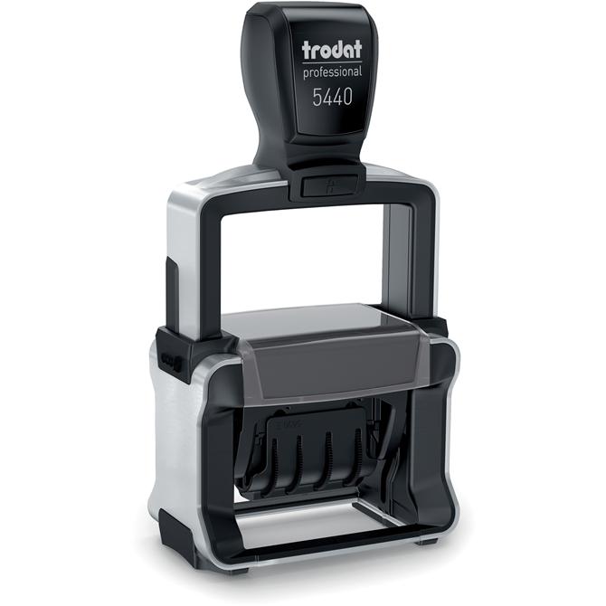 Professional five-in-one date stamp offers a quick, versatile way to stamp documents with the date only or with the date and four interchangeable key phrases. Self-inking dater delivers rapid, repeat impressions of the words ENTERED, FAXED, PAID or RECEIVED in blue uppercase letters, the date in red and a blue line so you can write in your name. Impression size is 1-1/8" x 2". Four-band date includes months, days and 10 years. The date band cover ensures fingers remain clean. Stamp delivers up to 10,000 impressions. The frame is made of steel.