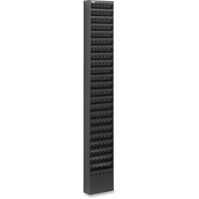Magazine rack mounts to a wall or stands on the floor with steel base (sold separately) to provide easy access to your literature. Perfect for office organization, guests and reception reading materials, or school resources. Steel frame has a textured powder-coat finish to resist scratches. Magazine rack has 23 pockets and weighs 23 lb. Each pocket measures 9" wide x 3/4" deep x 7-1/4" high.