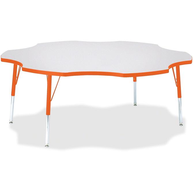 This six-leaf activity table provides the perfect seating arrangement for up to six children. Durable laminate features an easy-to-clean surface. TRUEdge is permanently thermo-fused to the edges to prevent chipping. Extra-safe, dual-screw steel legs allow you to easily adjust the height of the table. Powder-coated, adjustable legs can be repositioned in 1" increments to provide maximum comfort for children. Leg guides reduce squeaks, prevent snags and eliminate rusting.