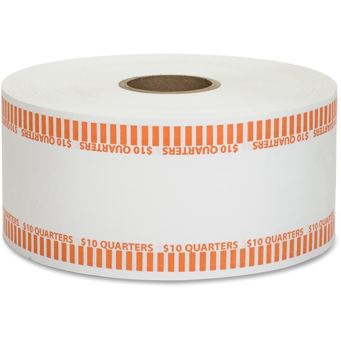 Color-coded, flat coin wrappers come one long, continuous roll for easy use in automatic coin-wrapping machines (sold separately). The 15 lb. white, kraft paper is cut by the machine and wrapped by the machine. Each roll contains approximately 1,900 wrappers. Wrappers for quarters are color-coded to meet ABA standards.