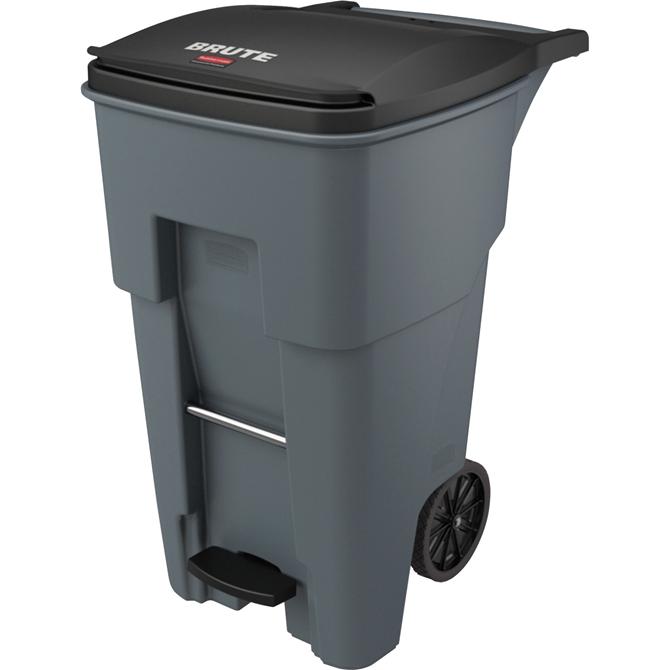BRUTE Step-On Rollout Container is designed to make managing facility waste easier. With one step, the container's step-on mechanism lifts the lid and allows hands-free waste disposal. Heavy-duty wheels with high-performance treads are optimized for use indoors and outdoors. Reinforced rim delivers superior structural integrity, and robust lid is designed for added strength. Rollout lid opens fully and stays in place to prevent swinging during transport. 65-gallon container is compliant with ANSI Standard Z245.60 (Types B and G) for compatibility with auto-lifters. Smooth contours and seamless construction make cleaning easier and quicker to improve staff productivity. Ergonomic rear handle allows comfortable push or pull operation. High-quality materials plus a UV inhibitor extend the life of the container. BRUTE Step-On Rollout is designed to maintain performance at freezing temperatures as low as zero degrees Fahrenheit.