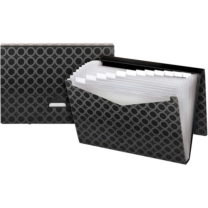 Locate, organize and protect your files and documents with this expanding file. Polypropylene construction is waterproof and tear-resistant for reliable document protection. Full cover flap and elastic closure keep your contents secure for easy mobility. Expandable pockets allow you to easily manage growing projects. Letter-size pockets help divide your contents for better organization. Customizable tabs can be easily labeled for quick reference to important files.