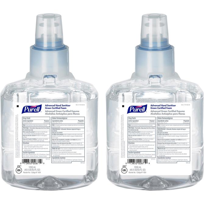 Foam hand-sanitizer refill is designed for PURELL LTX-12 Hands-Free Dispensers and features a scientifically advanced, patent-pending formulation that outperforms other hand sanitizers ounce for ounce. PURELL Advanced Green Certified Foam kills 99.99 percent of most common germs on hands. Green certified and USDA certified, bio-based formulation meets EcoLogo hand sanitizer standard CCD-170 for environmental leadership and proven performance as well as CDC and APIC recommendations. Nonaerosol foam formula is fragrance-free and dye-free. Hand sanitizer is clinically proven to help maintain skin health with a nourishing blend of four skin conditioners. Use with latex, nitrile and vinyl gloves, and CHG. Controlled-collapse refill (not included) holds its shape as it empties for a more attractive appearance. Sanitary-sealed refill helps prevent contamination.