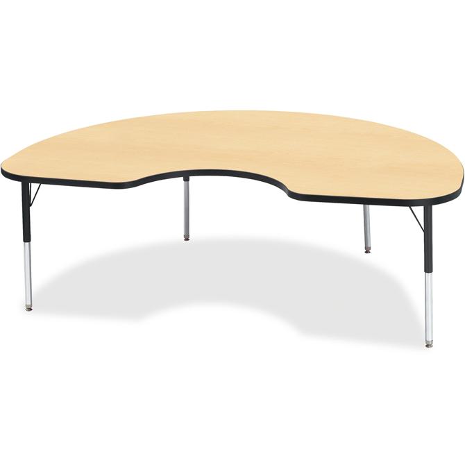 Let children safely work on their favorite arts and crafts on this kidney-shaped activity table. Laminate is durable and features an easy-to-clean surface. TRUEdge is permanently thermo-fused to the edges to prevent chipping. Extra-safe, dual-screw steel legs allow you to easily adjust the height of the table. Powder-coated, adjustable legs can be repositioned in 1" increments to provide maximum comfort for children. Leg guides reduce squeaks, prevent snags and eliminate rusting.