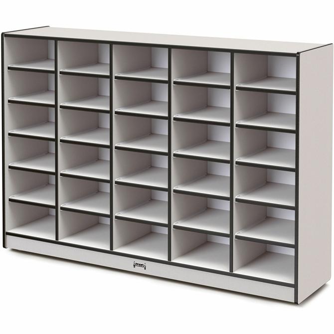 30-tub mobile storage unit without bins provides tons of storage space for individual students or classroom supplies. Laminate is durable and features an easy-to-clean surface. MAXBrackets allow the art center to be moved effortlessly from room to room without causing stress on the wheels and brackets. Wheels are made of hard rubber and won't leave black marks on your floor. TRUEdge is permanently thermo-fused to the edges to prevent chipping. Standard Write-n-Wipe recessed backs can be easily wiped clean.
