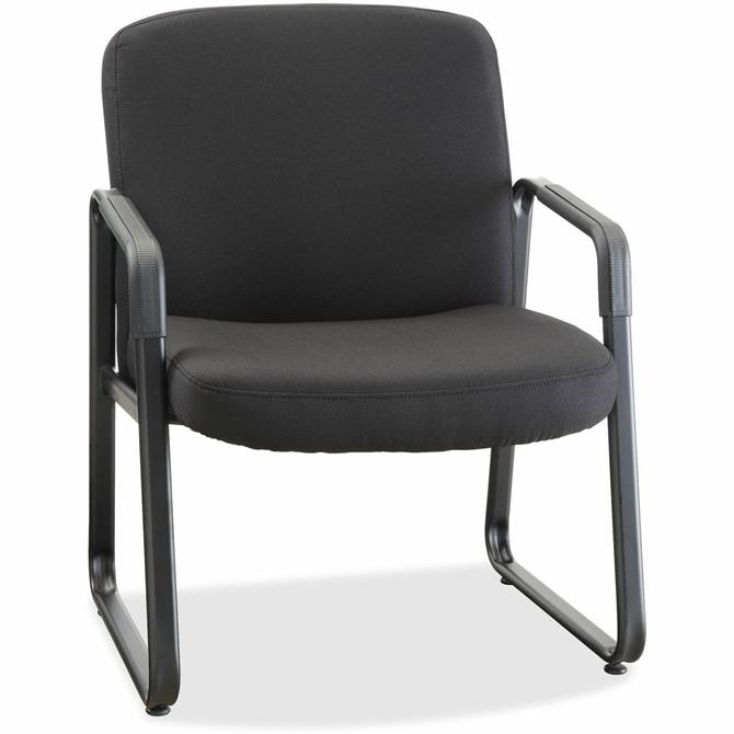 With fabric-upholstered, padded seat and back, this Big & Tall Guest Chair offers deluxe comfort for your waiting room and a 500 lb. capacity to support more guests. Sturdy construction features a plywood core for the seat and back, black plastic arm caps and metal frame with a powder-coat finish. Sled base with stabilizing feet offers a balanced, supportive foundation for your guests. Chair meets or exceeds ANSI/BIFMA standards.