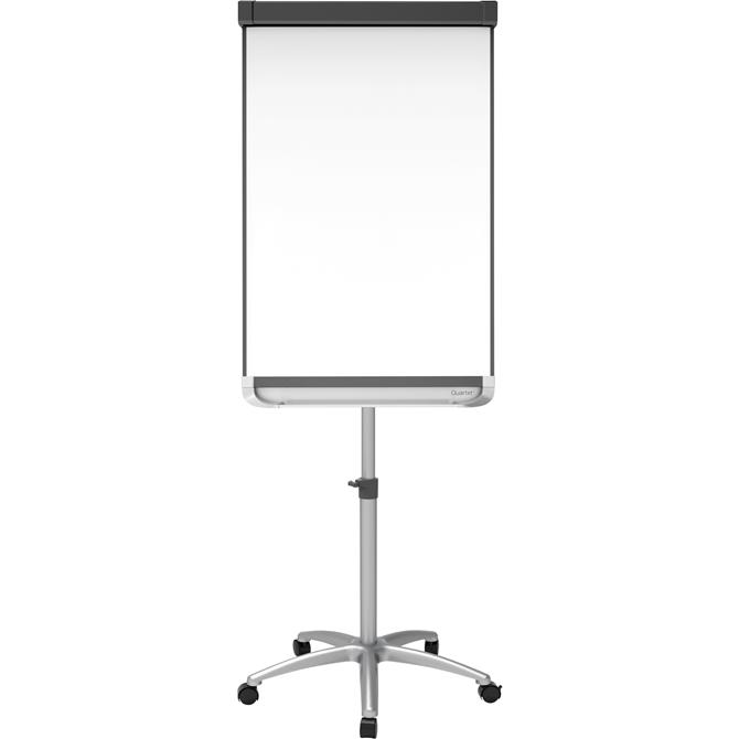 Mobile presentation easel features a versatile design that can be used as a magnetic whiteboard, magnetic bulletin board and flip-chart stand. Total Erase surface resists ghosting and staining to maintain a lasting professional appearance. Height-adjustable construction allows you to quickly change the height for better visibility for everyone in the room. Smooth-rolling, star-base wheels allow quick, easy mobility. Flip-chart holders support all standard-size flip charts (sold separately).