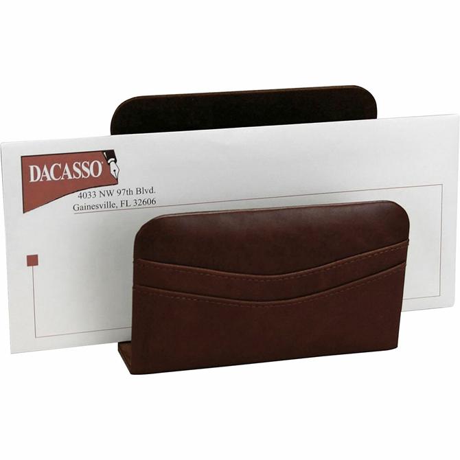 Letter Holder is beautifully made with decorative stitching across the front to make a subtle statement that works in any decor. Top-grain leather adds professional style to any work space. Soft velveteen protects surfaces from scuffs and scratches. Open-end design accepts envelopes of any length.
