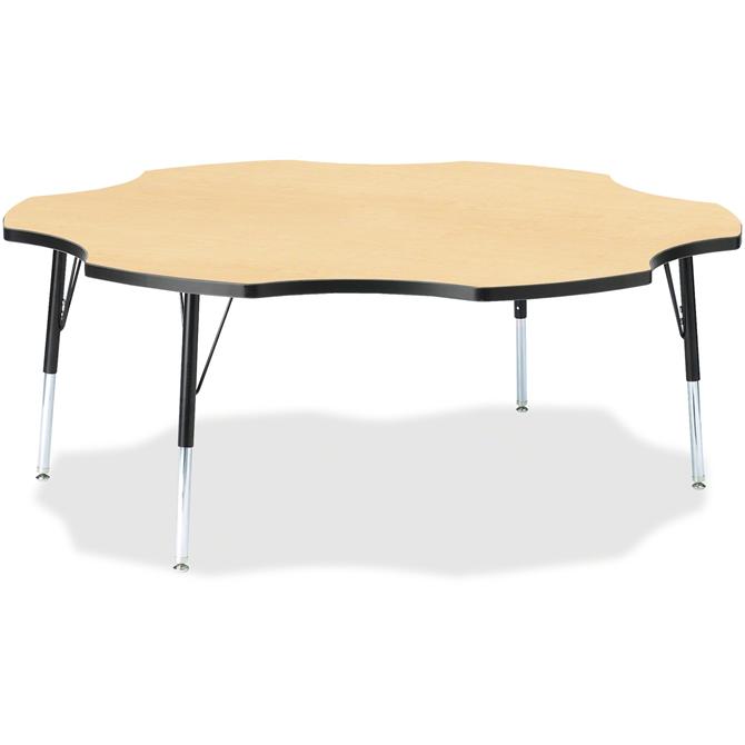 This six-leaf activity table provides the perfect seating arrangement for up to six children. Durable laminate features an easy-to-clean surface. TRUEdge is permanently thermo-fused to the edges to prevent chipping. Extra-safe, dual-screw steel legs allow you to easily adjust the height of the table. Powder-coated, adjustable legs can be repositioned in 1" increments to provide maximum comfort for children. Leg guides reduce squeaks, prevent snags and eliminate rusting.