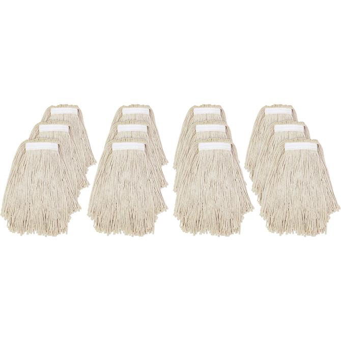 This 16 oz. mophead with a narrow headband is suitable for a wide range of cleaning tasks. Four-ply cotton construction is absorbent for effective cleaning. Strong short staple fibers and yarn twist for longer life span vs. competitor's mops. Design also includes cut ends for economic value.