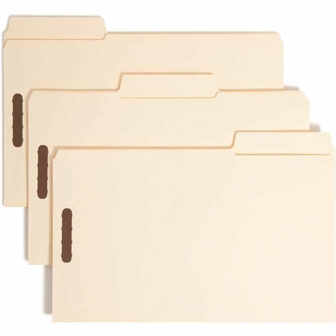 Supertab Fastener Folders offer nearly double the labeling area of standard folders so you can use larger text or more lines of description. Use with any vertical or lateral filing system. Folders are made of 11 point stock. Use two fasteners in positions No. 1 and 3 to subdivide the folder and separate documents for storage. 2" K-style fasteners hold papers securely inside. Each folder is scored for 3/4" expansion. Reinforced tabs are in assorted 1/3-cut positions.